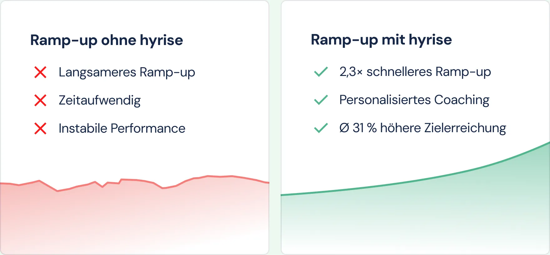 Mit hyriseTraining unterstützen wir sowohl neue Mitarbeitende als auch bestehende Sales-Teams durch rollenbezogenes, praxisnahes Training im Arbeitsalltag, um die Einarbeitung zu beschleunigen und die Performance zu verbessern.